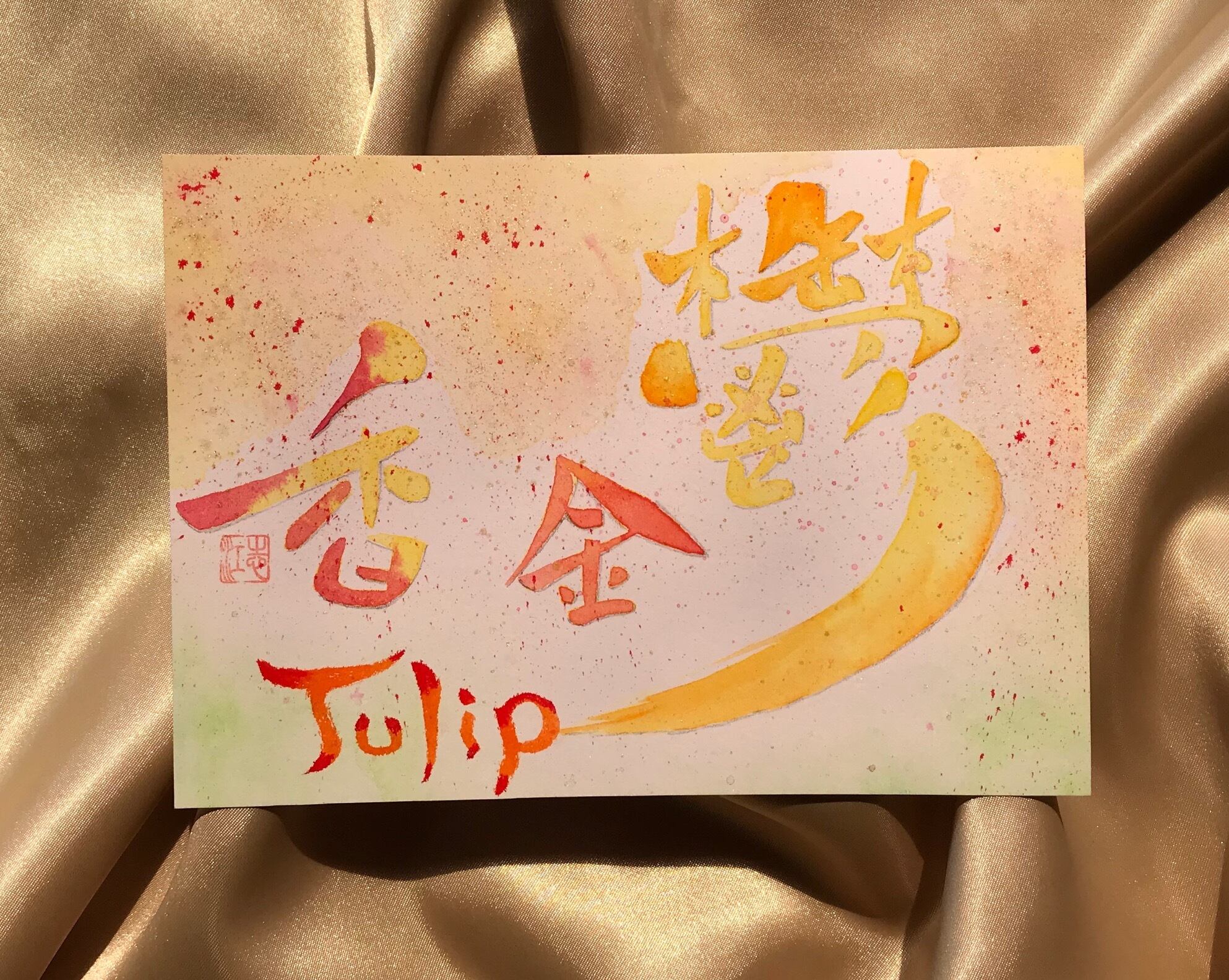 【 鬱金香 】(黄をベースにオレンジ、赤)